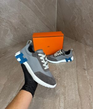 Hermes Bouncing Grey, Blue Logo Sneakers