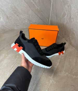 Hermes Bouncing Sneakers Black, Orange Logo