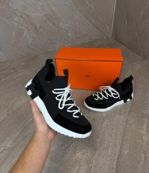 Hermes Bouncing Sneakers Black White, Veters