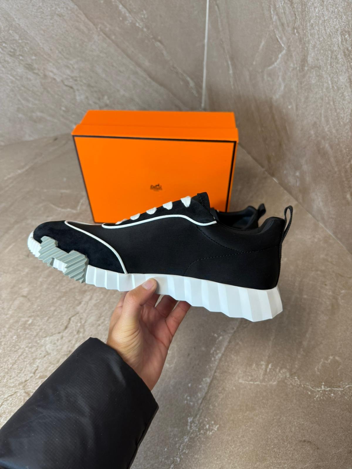Hermes Bouncing Sneakers Black, White Stripes