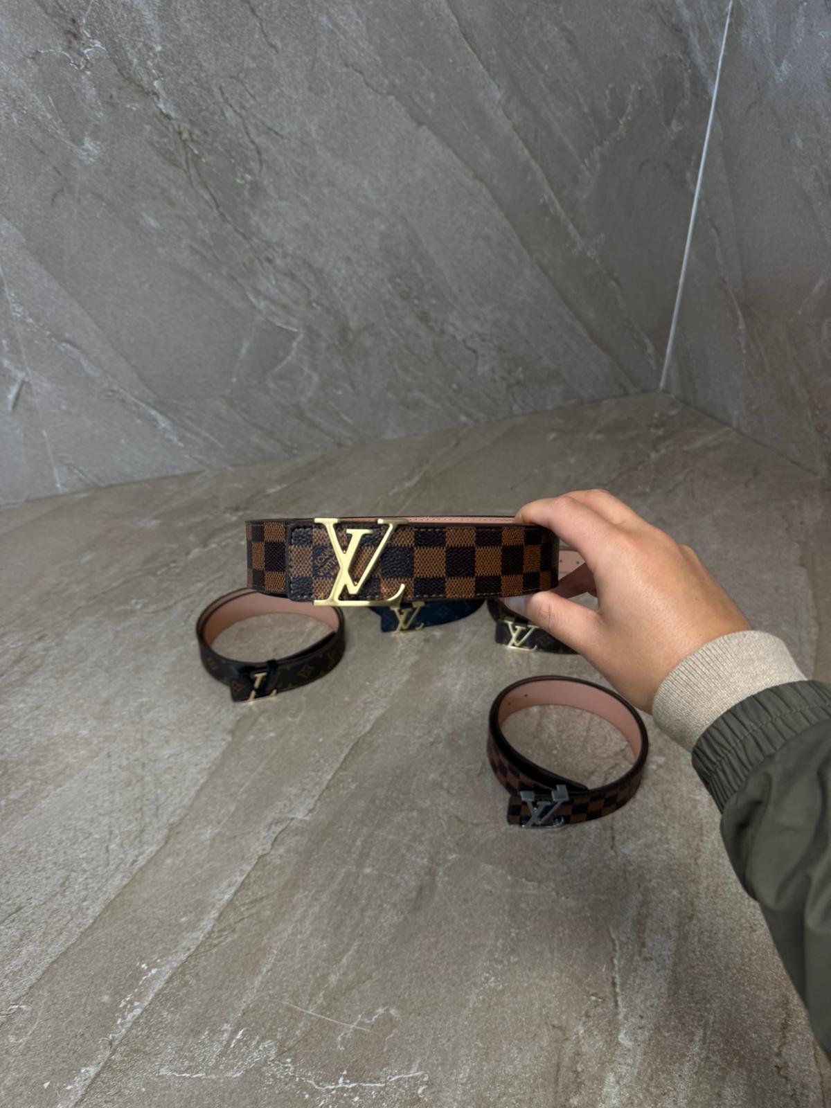 Louis Vuitton Brown Blokjes, Goude Logo